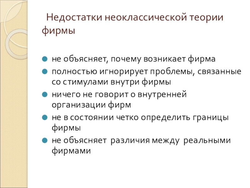 Слайд 6 Недостатки неоклассической теории фирмы