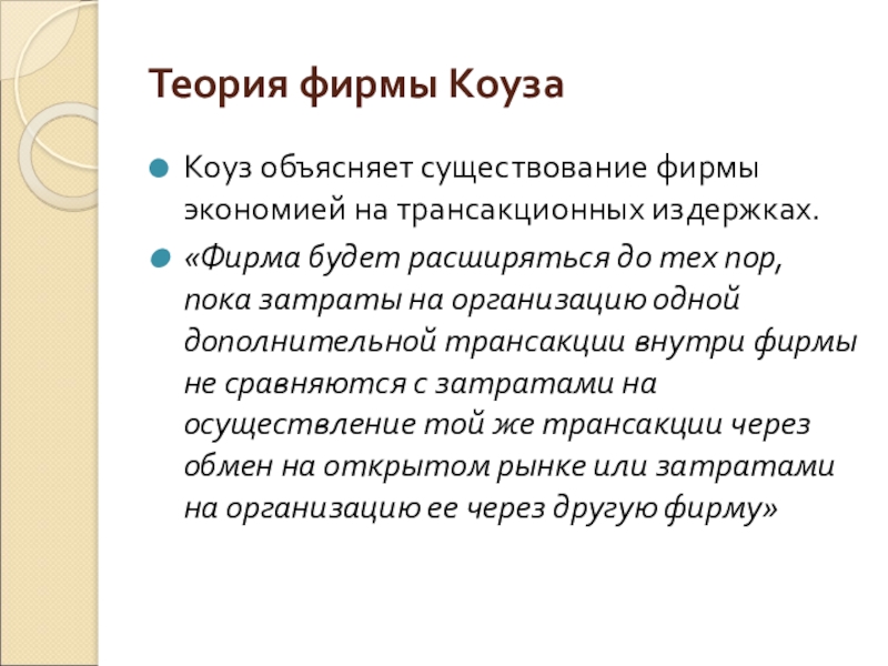 Слайд 8Теория фирмы Коуза