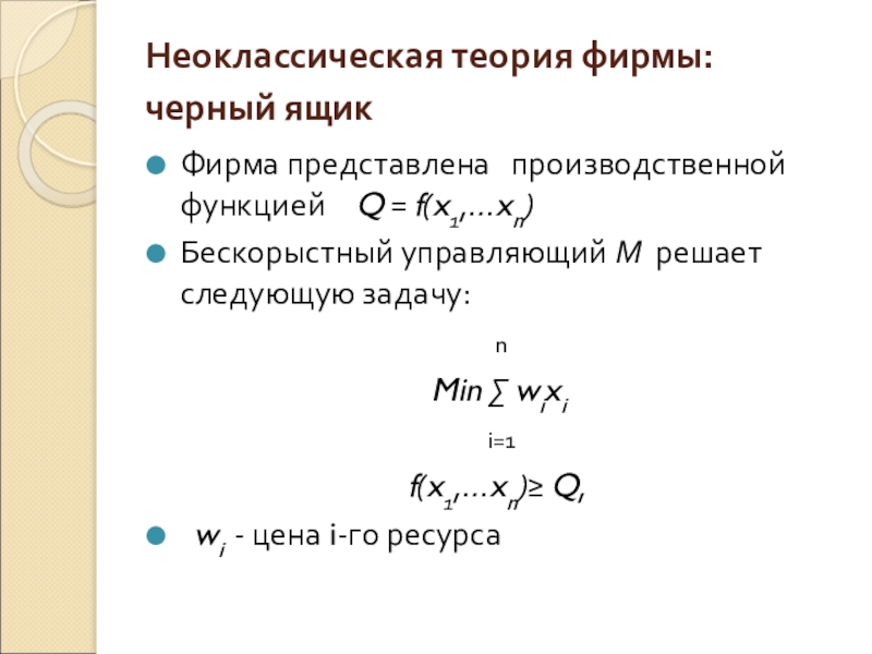 Слайд 3Неоклассическая теория фирмы: черный ящик