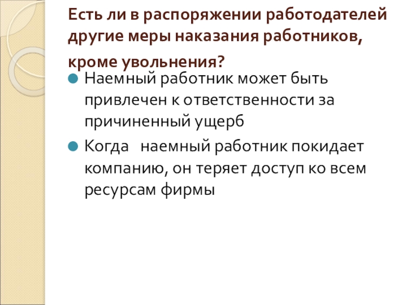 Слайд 19Есть ли в распоряжении работодателей другие меры наказания работников, кроме увольнения?