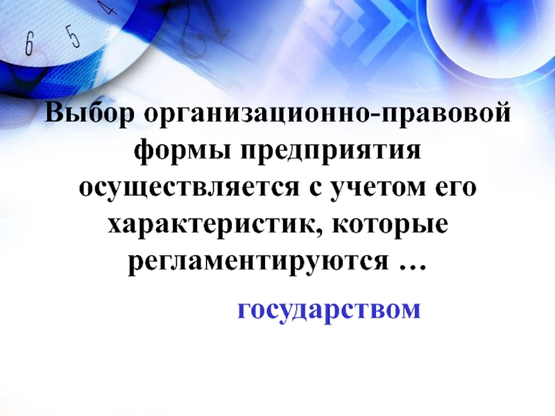 государством Выбор организационно-правовой формы предприятия осуществляется с учетом его характеристик, которые регламентируются …