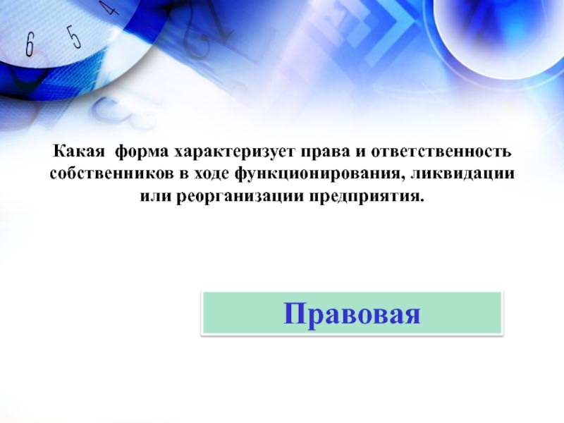 Презентация, доклад по экономике. Викторина. Тема: Организационно-правовые формы организаций (предприятий)