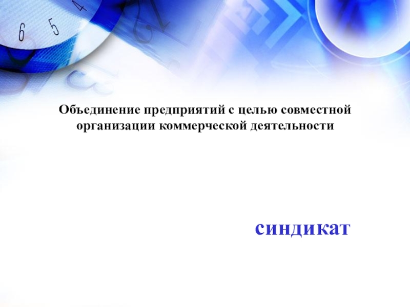 синдикатОбъединение предприятий с целью совместной организации коммерческой деятельности