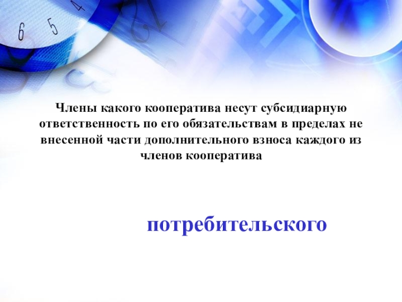 потребительскогоЧлены какого кооператива несут субсидиарную ответственность по его обязательствам в пределах не внесенной части дополнительного взноса каждого