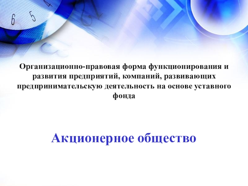 Акционерное обществоОрганизационно-правовая форма функционирования и развития предприятий, компаний, развивающих предпринимательскую деятельность на основе уставного фонда