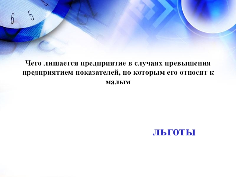 льготыЧего лишается предприятие в случаях превышения предприятием показателей, по которым его относят к малым