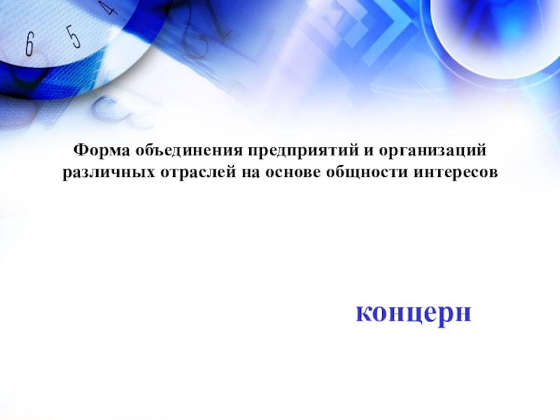 концернФорма объединения предприятий и организаций различных отраслей на основе общности интересов