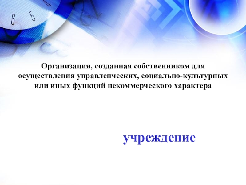 учреждениеОрганизация, созданная собственником для осуществления управленческих, социально-культурных или иных функций некоммерческого характера