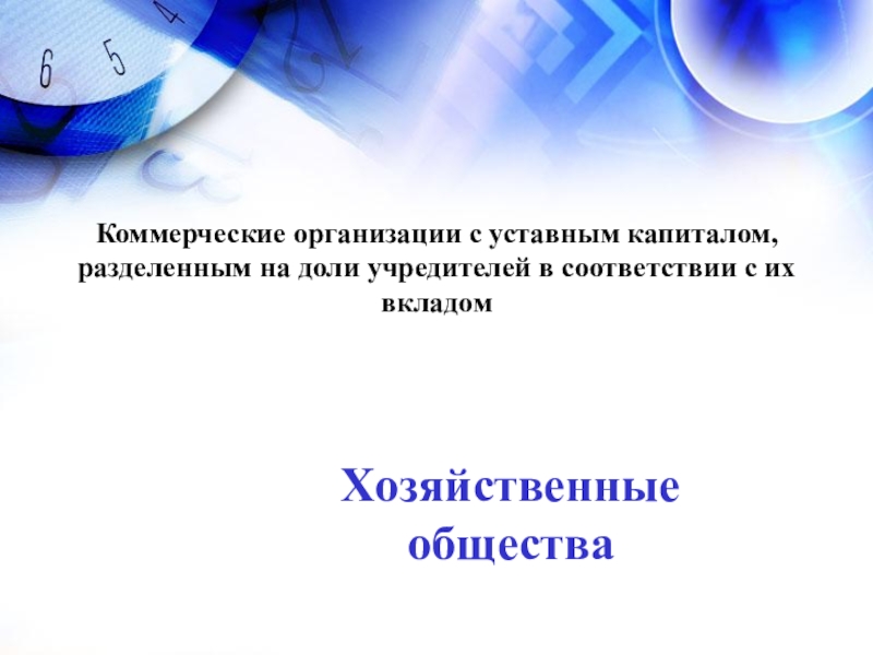 Хозяйственные обществаКоммерческие организации с уставным капиталом, разделенным на доли учредителей в соответствии с их вкладом
