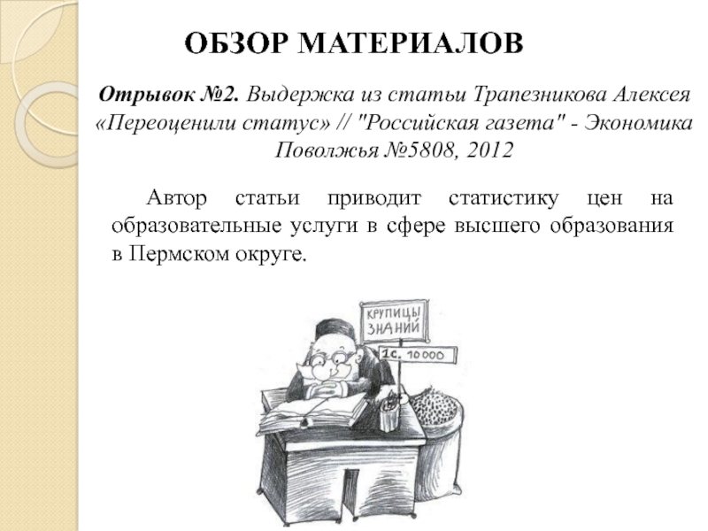 Автор статьи приводит статистику цен на образовательные услуги в сфере высшего образования в Пермском округе.