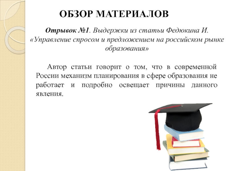 Автор статьи говорит о том, что в современной России механизм планирования в сфере образования не работает и подробно освещает причины данного явления.