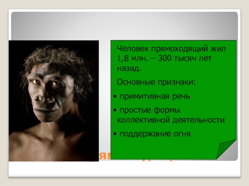 Человек прямоходящий жил 1,8 млн. – 300 тысяч лет назад.