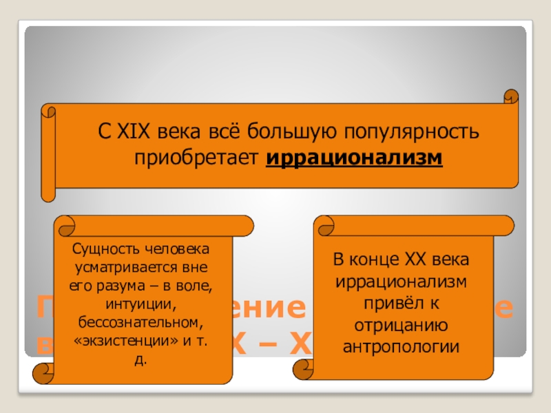 Слайд 19Представление о человеке в конце XIX – XX вв.