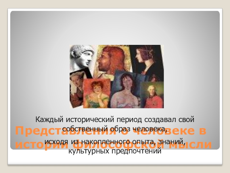Слайд 7Представления о человеке в истории философской мысли