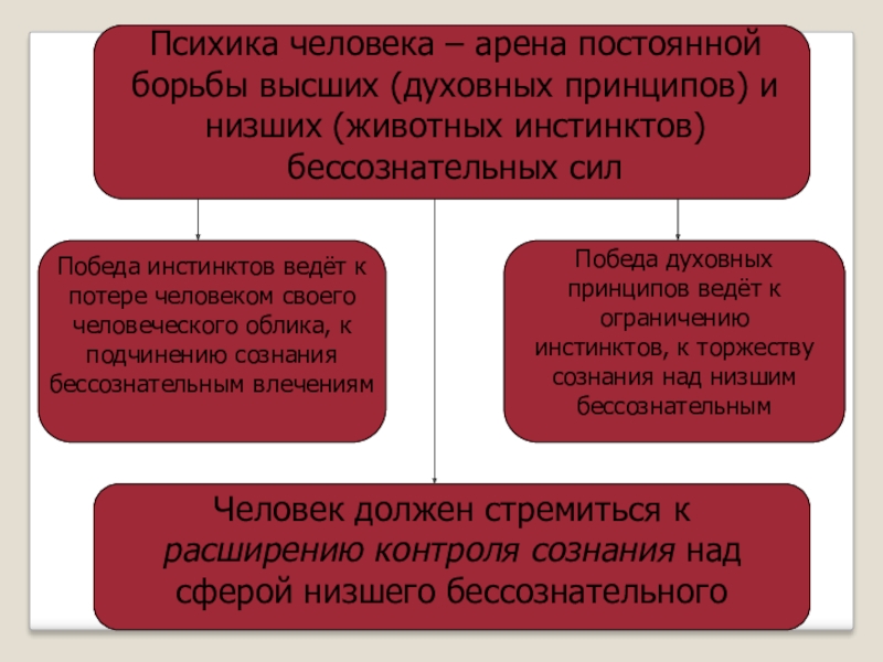 Победа духовных принципов ведёт к ограничению инстинктов, к торжеству сознания над низшим бессознательным