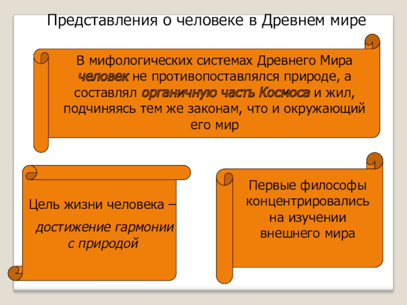 не противопоставлялся природе, а составлял органичную часть Космоса и жил, подчиняясь тем же законам, что и окружающий его мир