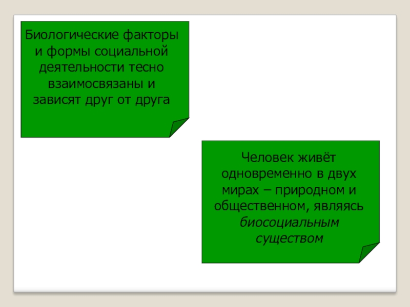 Биологические факторы и формы социальной деятельности тесно взаимосвязаны и зависят друг