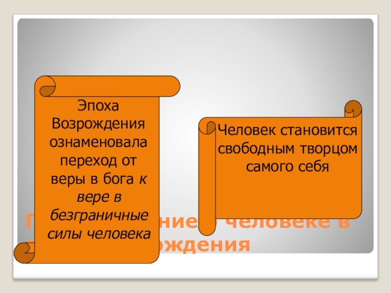 Слайд 15Представление о человеке в эпоху Возрождения