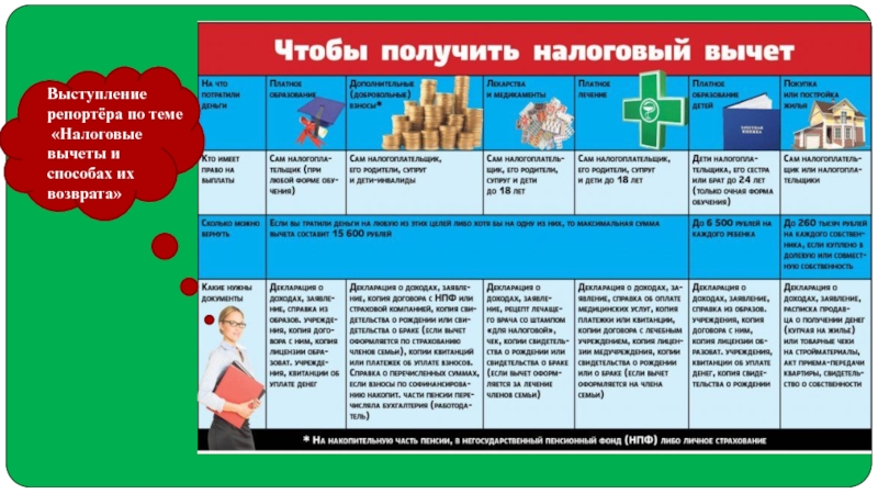 4.Николай записался на курсы английского языка (стоимость курсов за год составляет 20000 руб.) Договор с образовательным учреждением оформлен на Марию Ильиничну и все квитанции сохранены.