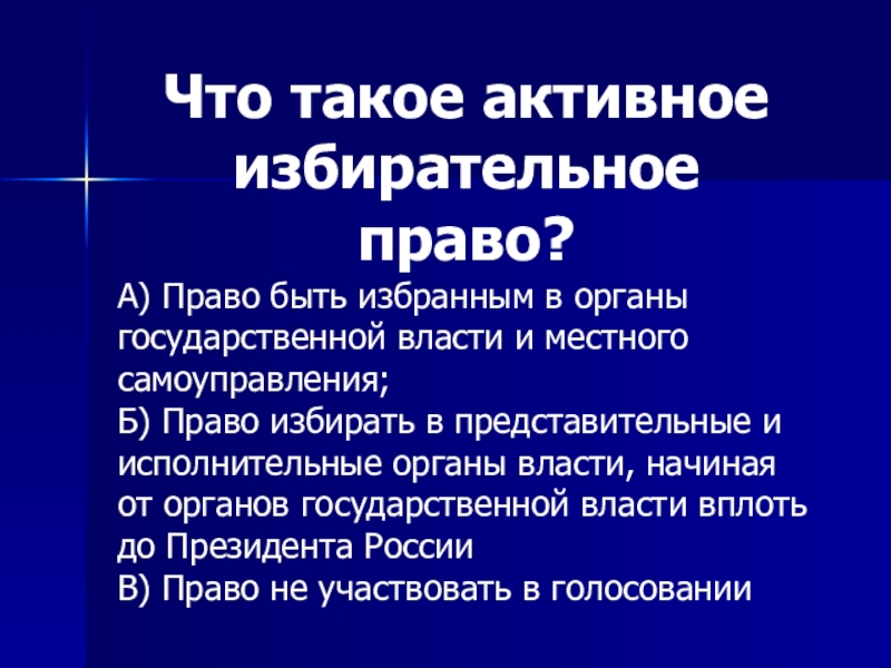 Слайд 37Что такое активное избирательное право?