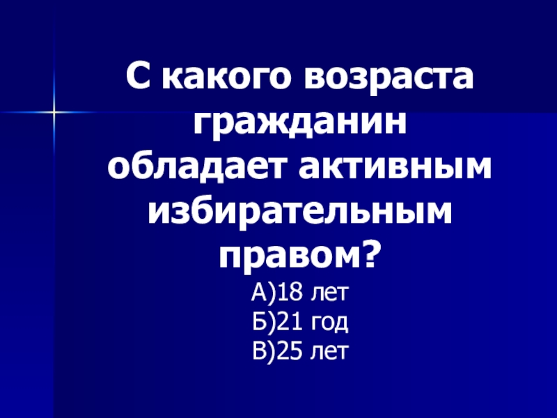 Слайд 31С какого возраста гражданин обладает активным избирательным правом?