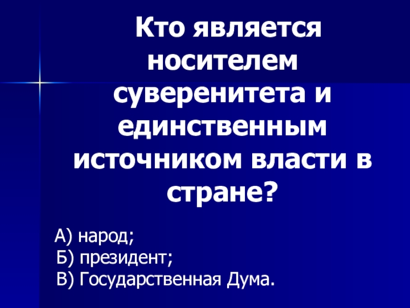 Слайд 13 Кто является носителем суверенитета и единственным источником власти в