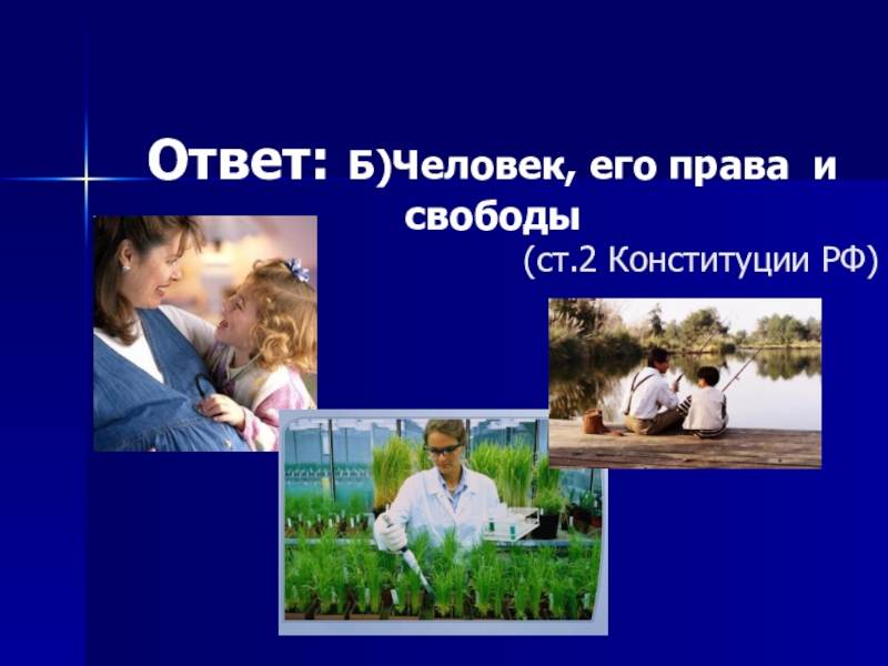 Слайд 8Ответ: Б)Человек, его права и свободы
