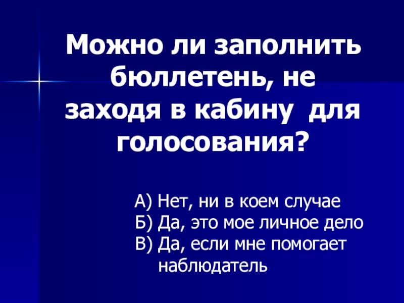Слайд 44Можно ли заполнить бюллетень, не заходя в кабину для голосования?