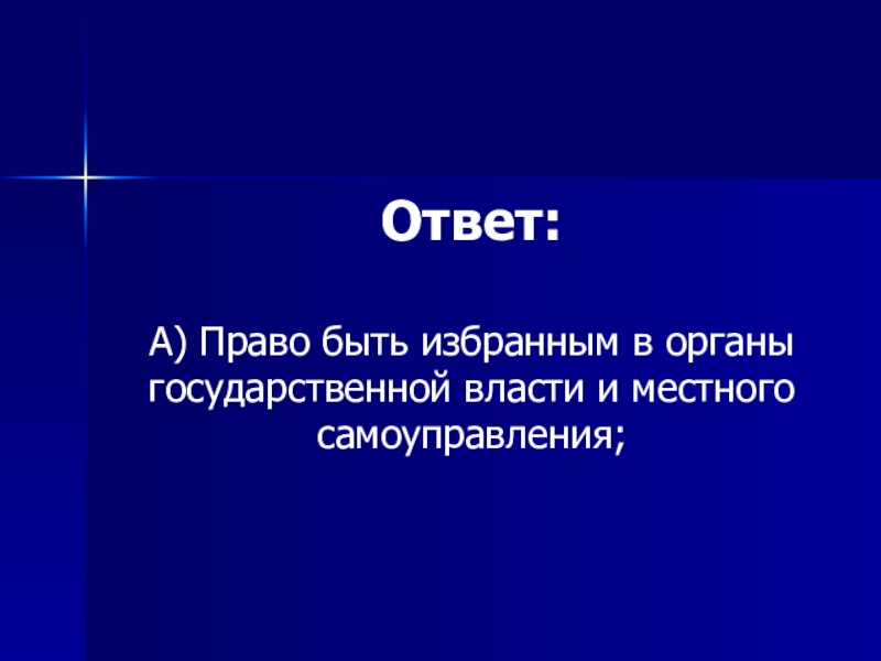 А) Право быть избранным в органы государственной власти и местного