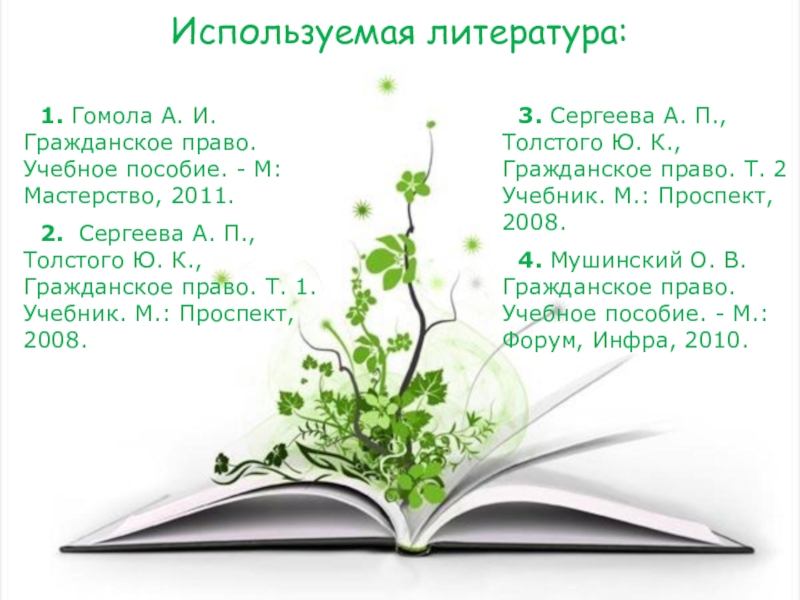 1. Гомола А. И. Гражданское право. Учебное пособие. - М: