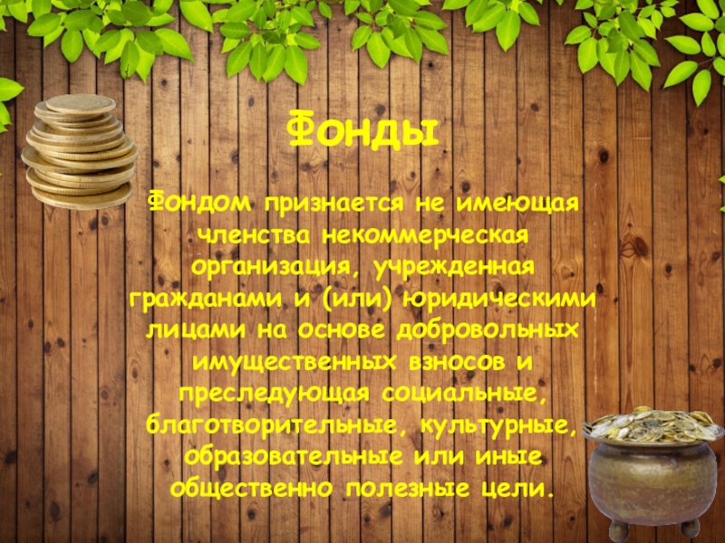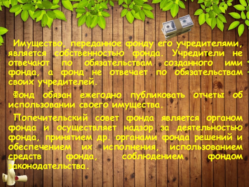 Слайд 24Имущество, переданное фонду его учредителями, является собственностью фонда. Учредители не отвечают