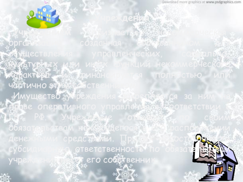 Учреждением признается некоммерческая организации, созданная собственником для осуществления управленческих, социально-культурных или