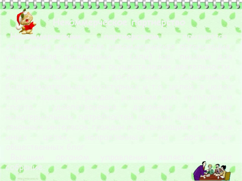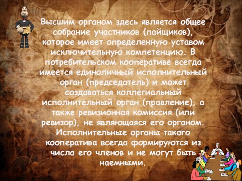 Слайд 18Высшим органом здесь является общее собрание участников (пайщиков), которое имеет определенную