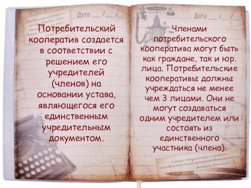 Слайд 17Потребительский кооператив создается в соответствии с решением его учредителей (членов) на
