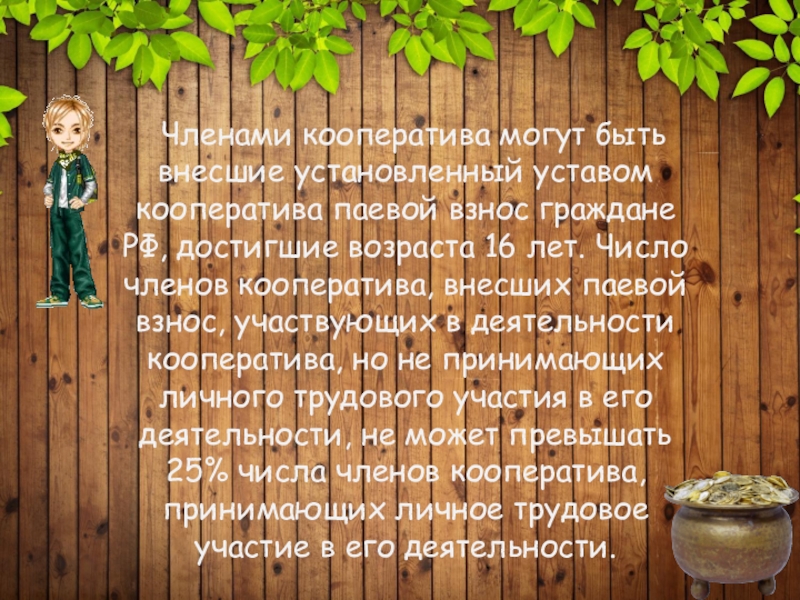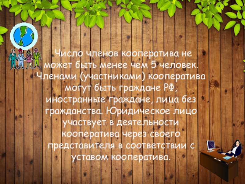 Слайд 4Число членов кооператива не может быть менее чем 5 человек. Членами