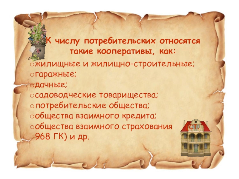 Слайд 16К числу потребительских относятся такие кооперативы, как:
