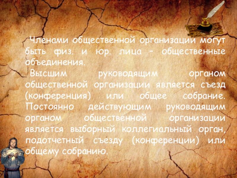 Слайд 11Членами общественной организации могут быть физ. и юр. лица – общественные
