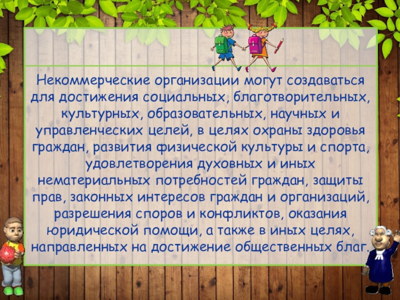 Некоммерческие организации могут создаваться для достижения социальных, благотворительных, культурных, образовательных, научных