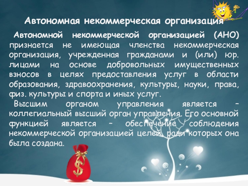 Автономной некоммерческой организацией (АНО) признается не имеющая членства некоммерческая