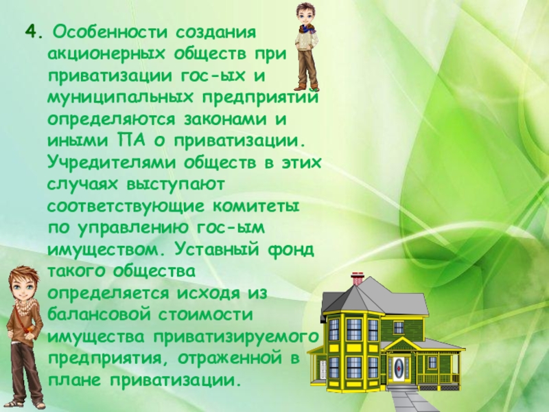 Слайд 224. Особенности создания акционерных обществ при приватизации гос-ых и муниципальных предприятий
