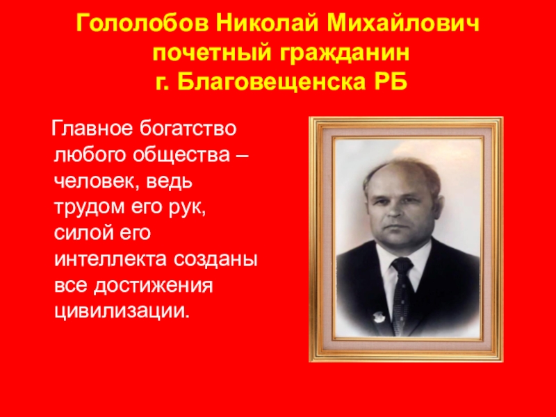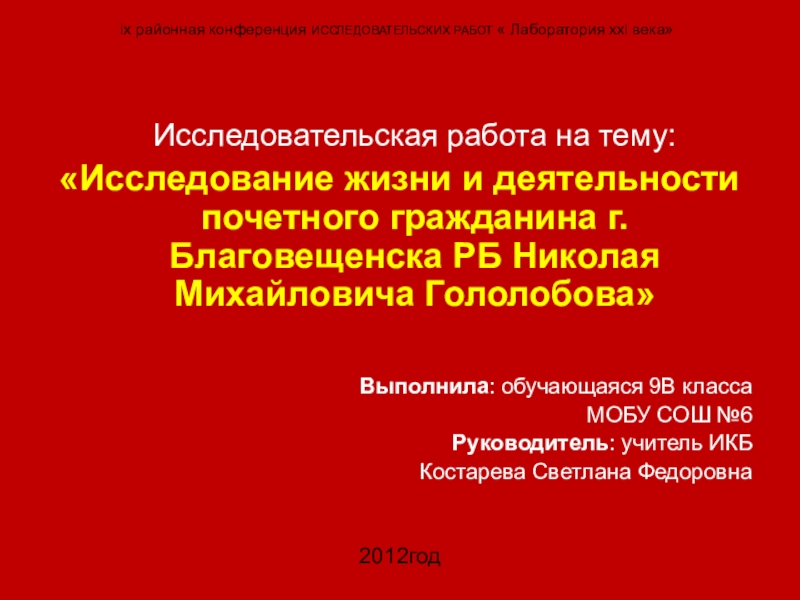«Исследование жизни и деятельности почетного гражданина г.Благовещенска РБ Николая Михайловича Гололобова»