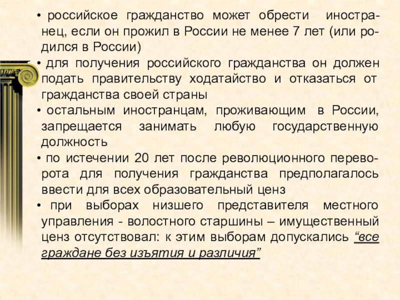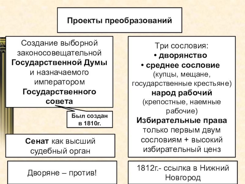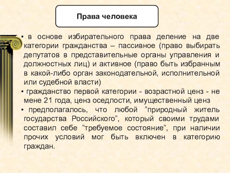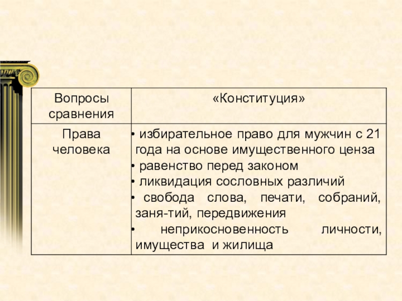 Избирательные права только первым двум сословиям + высокий избирательный ценз