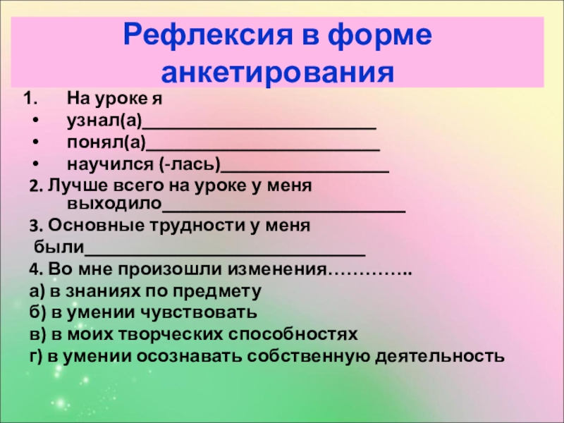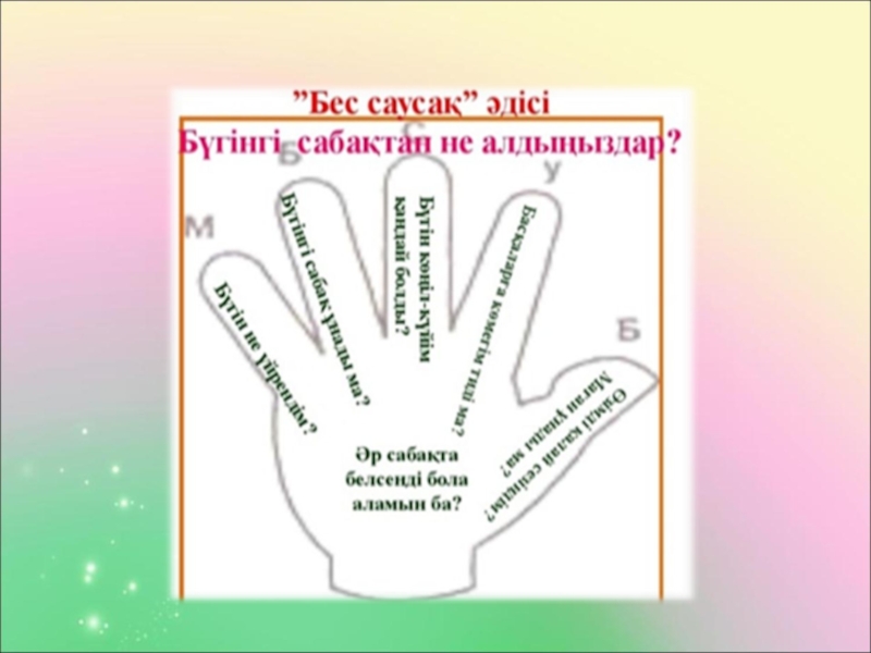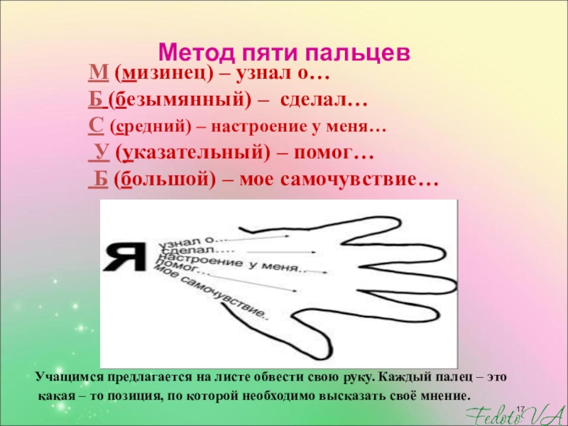 Учащимся предлагается на листе обвести свою руку. Каждый палец – это