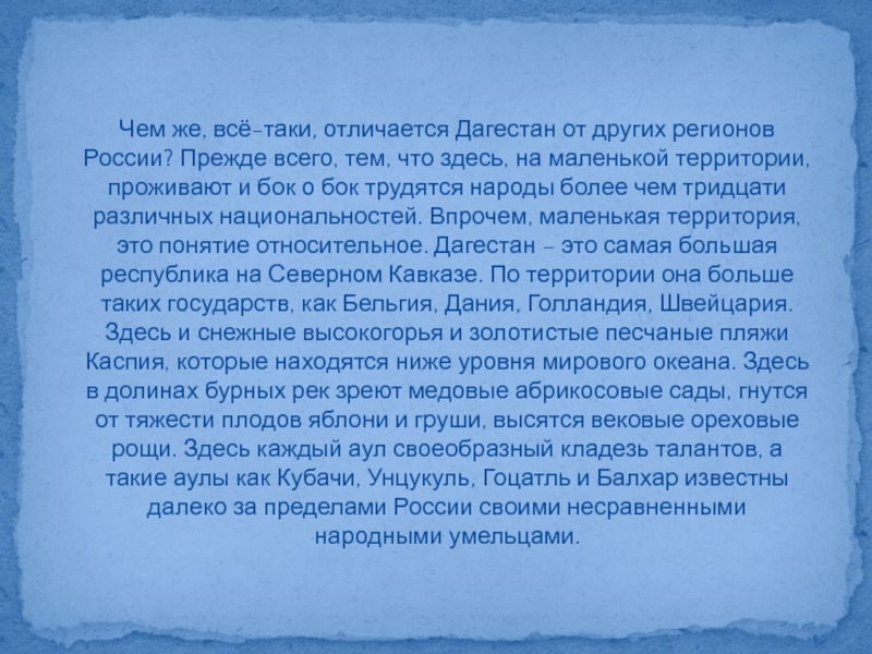Слайд 24Чем же, всё-таки, отличается Дагестан от других регионов России? Прежде всего,