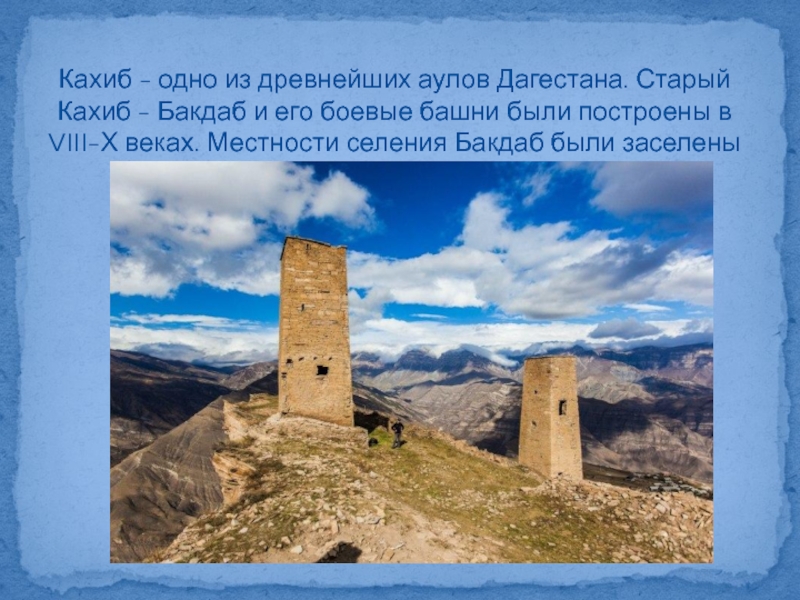 Слайд 12Кахиб - одно из древнейших аулов Дагестана. Старый Кахиб - Бакдаб