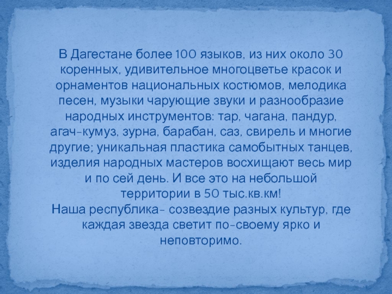 Слайд 6В Дагестане более 100 языков, из них около 30 коренных, удивительное