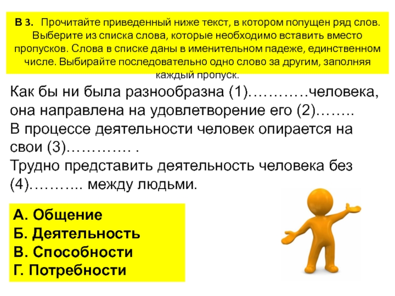 Как бы ни была разнообразна (1)…………человека, она направлена на удовлетворение его (2)……..