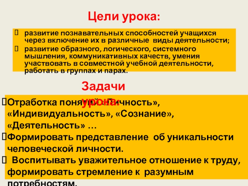 Отработка понятий «Личность», «Индивидуальность», «Сознание», «Деятельность» …