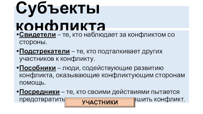 разрастание конфликта, увеличение количества участвующих в конфликте