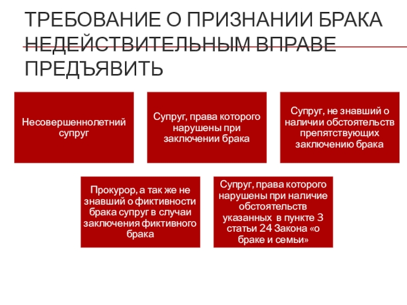 Слайд 9Требование о признании брака недействительным вправе предъявить